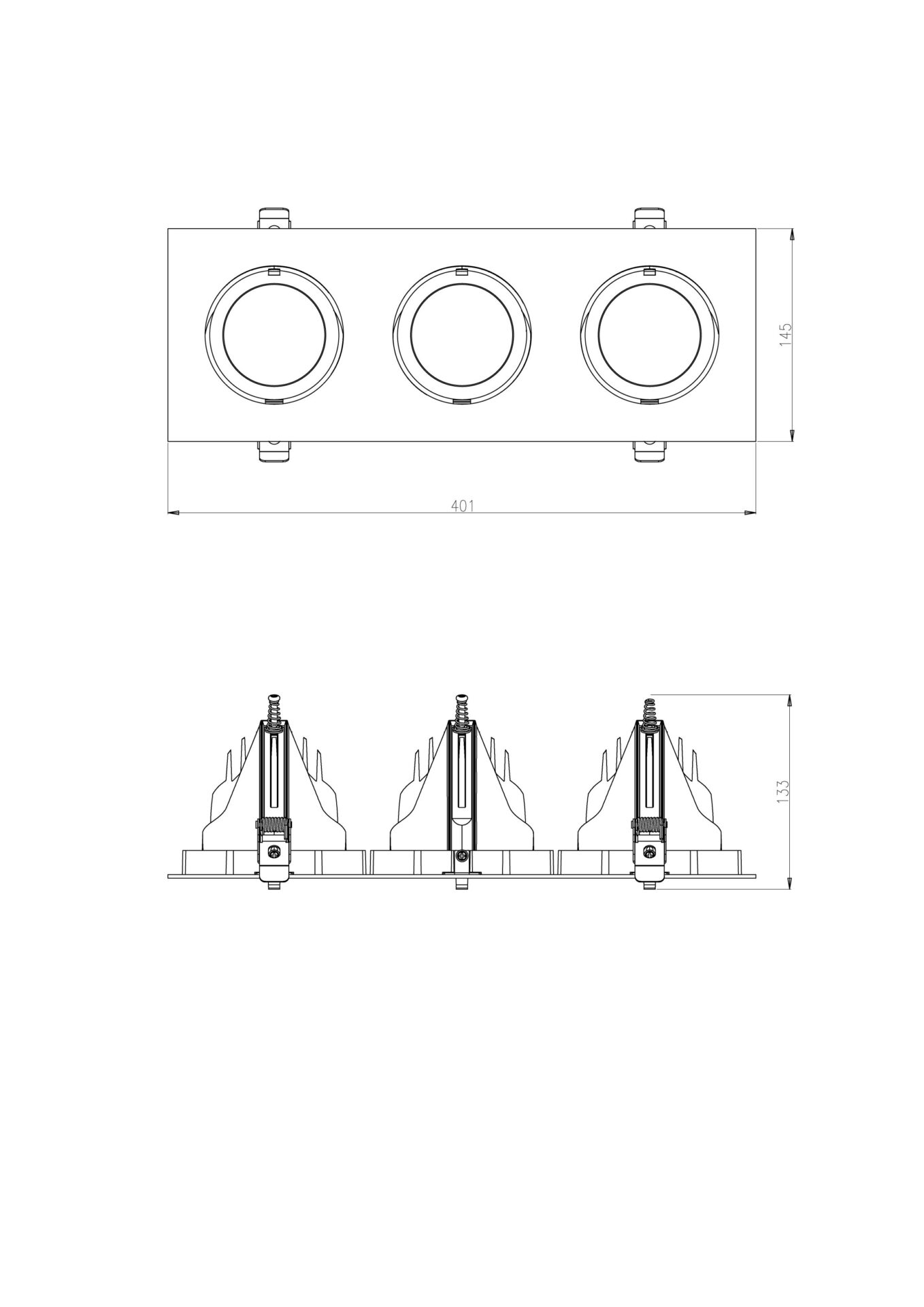 LED-Deckeneinbaustrahler kardanisch; 145mm; 3-Flammig; 4.000K
