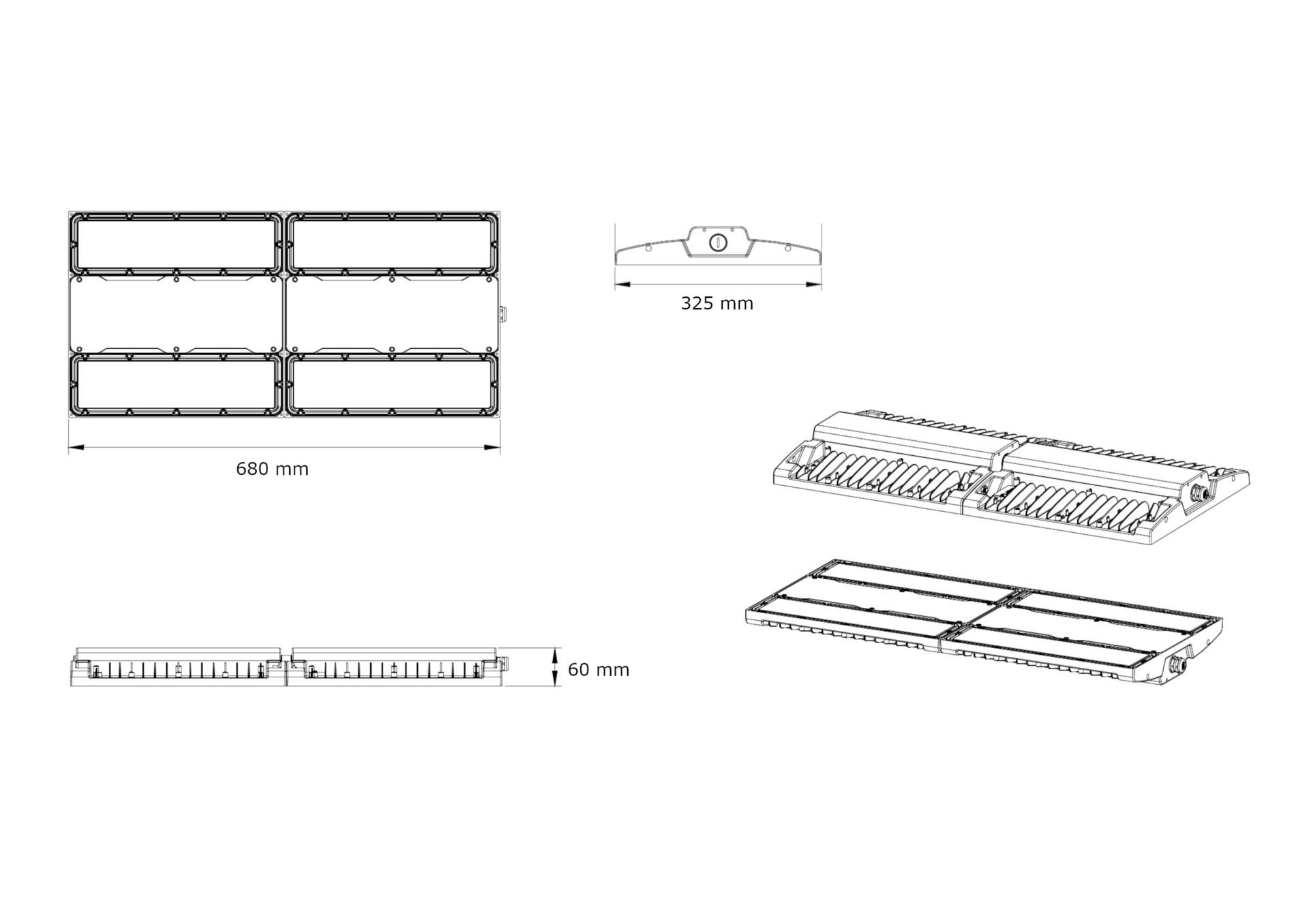 emsLICHT LED-Hallenstrahler, 240W Der hocheffiziente und langlebige HT5… wurde entwickelt, um die Produktivität in Industrie- und Lagerhallen zu steigern. Im Vergleich zu anderen UFO-Hallenstrahlern benötigt sie weniger Einheiten, um die gleichen oder sogar bessere Ergebnisse zu erzielen. Er ist modular aufgebaut und wird mit Seilabhängeset und Halterungen, jeweils verstellbar, geliefert. Der Wartungsaufwand ist minimal, und der Treiber ist von vorne zugänglich, was ggf. doch notwendige Eingriffe vereinfacht und erleichtert. Die Leuchte ist ebenso für Sporthallen konzipiert und verfügt über eine entblendete Optik mit einem UGR-Wert <19 für höheren Sehkomfort. Er ist nach dem Sporthallenballtestsiegel DIN 57710-13 zertifiziert. DALI-Protokoll und 0–10 V sind verfügbar. Die 0–10 V-Version verfügt über einen Zhaga-Sockel und ermöglicht die Integration eines Bluetooth-Mesh-Kommunikationsknotens, der auch einen Anwesenheitssensor für höhere Energieeinsparungen enthalten kann. Gehäuse aus Aluminium, Farbe schwarz, Lichtaustritt PC mit optischer Linsentechnik, UGR <19 Serie: HT5 Gehäuse: Aluminium Gehäusefarbe: silbergrau Lichtaustritt: Polycarbonat mit optischer Linsentechnik (UGR <19) Abmessungen: 680×325×60mm (LxBxH) Montageart: Pendel und Anbau / ballwurfsicher Deckenbaldachin: - Leuchtmittel: LED Modul Farbtemperatur:4.000K Farbwiedergabeindex: CRI > 80 Lebensdauer: 82.000 Std. (L80) / 130.000 Std. (L70) @Ta=45° C Lichtstrom: 40800 lm Systemleistung: 240 W Systemeffizienz: 170 lm/W Abstrahlwinkel: 85° Betriebsspannung: 230V / 50Hz Überspannungsschutz: 6kV line-line, 10kV line-earth Betriebsgerät: DALI 2 Schutzklasse: I Schutzart: IP66 Schlagfestigkeit: IK10 Normen: CE Fabrikat: emsLICHT AG, Geeste-Dalum Typ: HT52400934L81 Kontakt: Mail an vertrieb@emslicht.de oder Tel.: 0 59 37 / 7 07 89 – 0